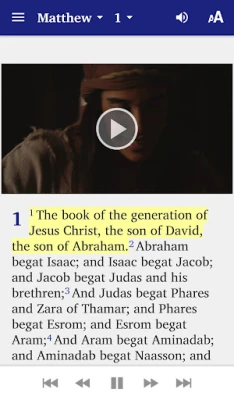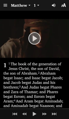 Read, listen, watch and meditate on the Word of God in English using our Bible app. This Bible app supports almost all Android devices, so it is easy for you to download and use, at no cost to you. The audio has been synchronized with the text and highlights each verse like karaoke when you push play. You can also start listening anywhere within a chapter by tapping on the verse you want to hear. Finally, you can watch the Gospels acted out word-for-word in the app thanks to partnership with Lumo Gospel Films.
