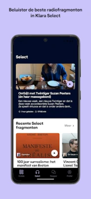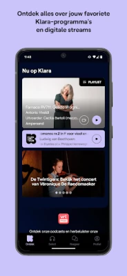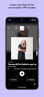 Met deze applicatie voor smartphone heeft u Klara altijd op zak. Zo kunt u snel, betrouwbaar, eenvoudig en in hoge kwaliteit uw favoriete Klara-programma’s beluisteren, waar en wanneer u maar wil. Dit alles in een herkenbare Klara-omgeving, met visuals van de componisten en/of uitvoerders en de presentatoren.