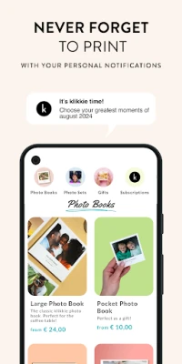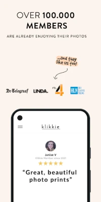 With klikkie, you can finally print your favorite photos! Easily create the cutest photo sets, the most stylish photo books, or the most beautiful wall decor with lifelike colors and razor-sharp details. klikkie has put together a beautiful selection of premium photo products, so you can relive special moments over and over again. Upload your photos super easily through the klikkie app, and the most beautiful prints will be delivered to your doorstep in no time!