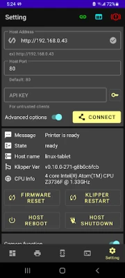This app is for controlling the 3D printer operated by the Klipper and monitoring the print status.