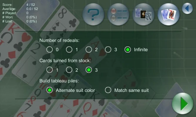- Tilts to any orientation, on any size cell phone or tablet - Customizable game rules - Cards that move and flip in 3D space - Multiple card decks and card backs - Auto-saved game state - Unlimited undo and redo, with a touch-and-drag slider control - Move cards with one-touch, two-touch, or touch and drag - Auto-play and auto-flip options - One-touch hint to reveal available moves - Built-in rules