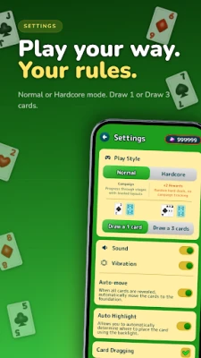 Whether you're just learning or you're a solitaire master, there's something here for everyone. With adjustable difficulty and plenty of helpful tools, you can enjoy the game the way you like it — casual and calm or challenging and strategic.