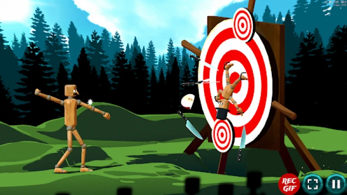 Can you hit the apple on the head? Play for fun or be the best thrower in woods!