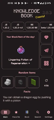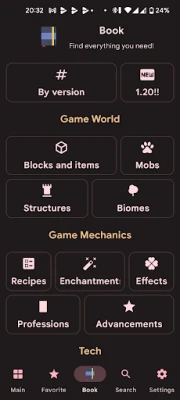 Features: - The application has items, blocks, mobs, biomes, structures, commands and more. - The application has brief descriptions of most elements of the game. - Search with filters. - Test generator. - Corresponds to the current version!