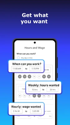 Step 2: Pick the schedule you want - FT or PT with the ability to select specific days and times for your availability.