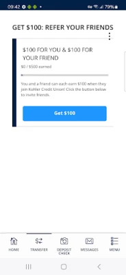 • Refer friends and earn $100 when they join KCU using your referral