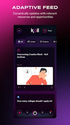 Koil Beta is an innovative career exploration and skill development platform designed exclusively for high school students. The app provides a secure, teen-only environment where users can explore potential career paths, access vetted educational resources, and receive personalized guidance to prepare for their future. Koil Beta features an adaptive feed designed to help teens efficiently prepare for their future careers, all within a secure and supportive community.