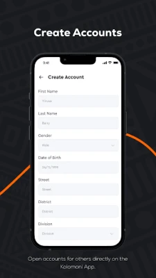 Open a Kolomoni account for others from the Kolomoni app and earn commissions while doing so.