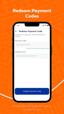 With the Kolomoni app, you can redeem a payment code on behalf of customers, making it easy for them to access funds quickly.