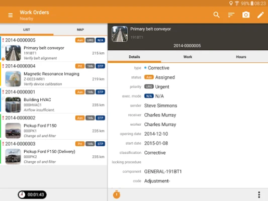 Used in conjunction with Interal and its maintenance module, this application allows you to manage your work orders even if no network connection is available. The synchronization between the databases will occur when the network becomes available.