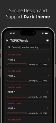 TOPIK words provide Korean vocabulary divided to memorize per day, so everyone can study easily.