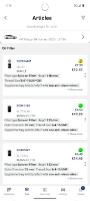The Kraft-Digital app is based on the comprehensive TecDoc and DVSE data pool data with the original data from the parts manufacturers and spare parts information for cars. For each item, all relevant information such as technical features or product images is displayed in the app. You will also find the linked OE numbers for the items as well as the information in which vehicles these spare parts are installed. The application is suitable for use in workshops, trade and industry. Users can quickly and specifically search for a vehicle part or a vehicle by entering a number and determine which vehicles the spare part fits into or which parts are required for the vehicle. The search is also possible using a scan function of the EAN code. Possible search criteria for quick part identification are any number, the article number, an OE number, the usage number or the comparison number.