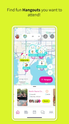 The suggestion algorithm shows you available hangouts with existing members of your Krew or suggested members based on things you have in common.