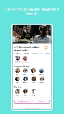 Quickly see different hangouts happening throughout your community, view profiles of participants, and apply to attend. Add friends to your Krew to build your group of friends for any activity or interest and keep the conversation going with our group chat feature.