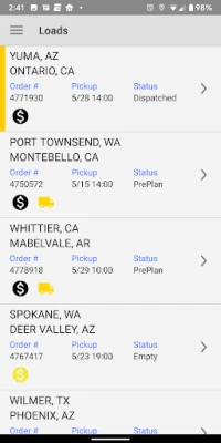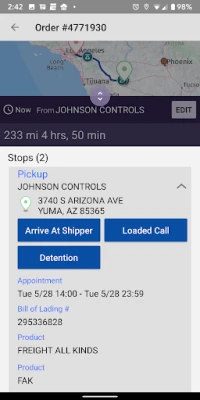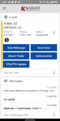 The Knight Transportation mobile application was designed with our driving associates in mind. You can easily keep track of your current and past loads while on the go.