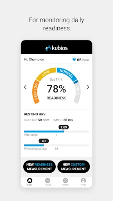 Kubios HRV app uses scientifically validated heart rate variability (HRV) algorithms (used by scientists all over the world) to provide reliable information about your wellbeing and daily readiness. To make HRV measurements with the app, you need a Bluetooth heart rate (HR) sensor, such as Polar H10. Kubios HRV app has two modes of operation: