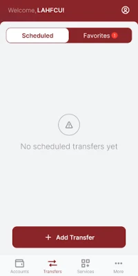 · Transfers: account to account, scheduled, pending ACH and check withdrawal transfers are available