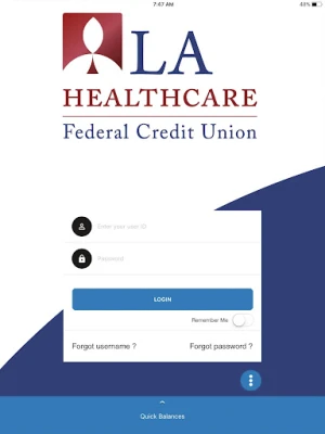Easily manage your internet banking with the LA Healthcare mobile app. This app was designed to flow easier and look better than ever. Check your balances on the go with a simple swipe from the app icon. Quickly sign-in using touch ID or your password for specific account information. Breeze through transactions, payments, transfers, make deposits, and search for the closest branch location from your phone or tablet.