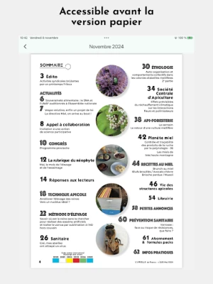 Retrouvez 11 numéros par an, avec de nombreux articles éducatifs et d'actualité apicole.