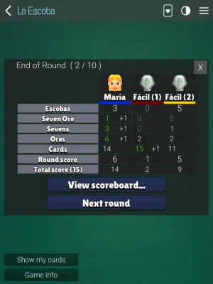 LA ESCOBATraditional spanish cards game for two to four players. It's the most popular cards game in Spain, Argentina, Colombia, Uruguay, etc. With very simple rules the goal is to make tricks of 15-sum cards. Collecting the most cards to score.The App includes a complete tutorial, as well as very detailed help, statistics, configuration options, etc.Challenge your mind!