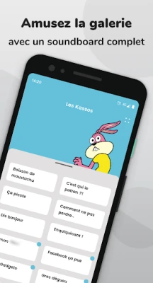 Dans ce soundboard au design élégant, vous allez pouvoir enfin aider vos amis en difficulté sociale grâce à plus de 100 extraits de la série Canal+ les Kassos.