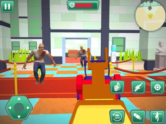 The zombie shooting and survival game has an apocalyptic world environment with abandoned buildings and ruined streets. The intense music makes it a more exhilarating zombie-hunting game.
