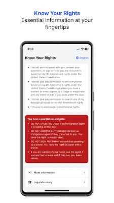 - This app is not affiliated with any government agency. It is for general informational purposes only and is based on publicly available resources from legal advocacy organizations. - Information is derived from reputable non-profit legal organizations and legal advocacy groups that assist individuals facing deportation. - Privacy Policy: https://www.lawfully.com/privacy-policy-know-your-rights