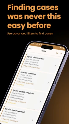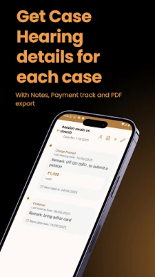 Smart Case Management β Add and manage cases with details like court name, party name, case stage, and more.