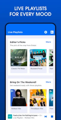 • Take Control: Skip live radio. Listen live to Global’s radio brands and skip* any songs you’re not loving – there’s no limit. Plus like and dislike tracks to let us know which songs you're loving - Just swipe away to take control of your favourite radio stations.