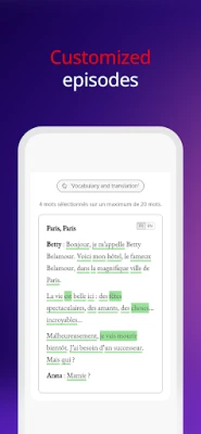 Correction of your lesson of the day: score, personalized explanations, requested vocabulary, written transcriptions of audio recordings and more