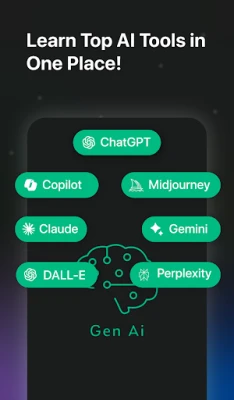 - AI Tool Mastery (ChatGPT, Gemini, Claude, etc.): Become proficient with a suite of popular gen AI tools. Learn ChatGPT prompt techniques, experiment with Gemini's latest features, explore Claude's capabilities, dive into Perplexity for knowledge discovery, and leverage Copilot for coding assistance. For visual creators, learn how to create stunning AI images with image generative tools like DALL-E and Midjourney. Our app keeps you up-to-date with the latest gen AI platforms and tools.