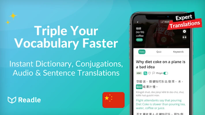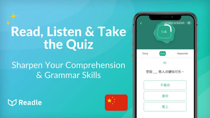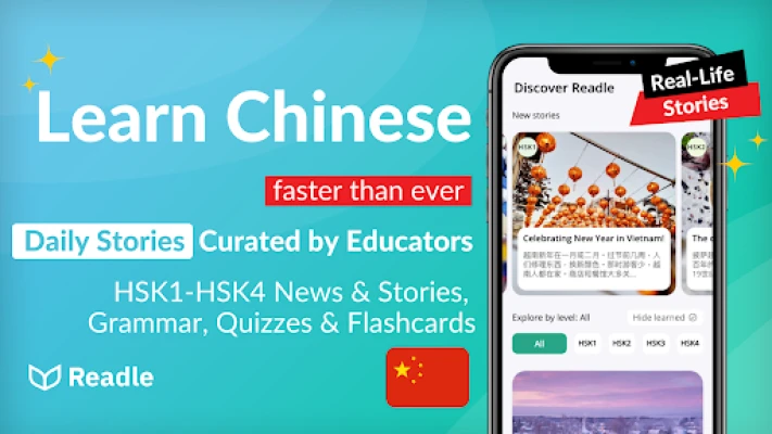 Master Chinese with Readle, the top-rated language-learning app offering real-world Mandarin Chinese news and stories to help you boost your skills from HSK1 beginner to HSK4 advanced levels. In just 10 minutes a day, you can learn Chinese vocabulary, pinyin, grammar, and more. Whether you want to expand your Mandarin Chinese skills for conversation, exams, or living in China, Readle makes it easy!