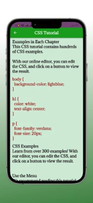 This amazing CSS Programming Learning app has amazing content such as CSS Programming Tutorials, CSS Programming Lessons, Programs, Questions & Answers and all that you need to either learn CSS programming basics or to become a CSS programming expert.