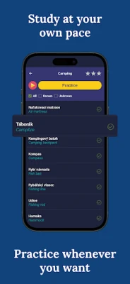 - Learn on your own! Study Czech independently, at your own pace, without needing teachers or tutors.