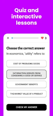 - Learning made fun: Play fun quiz games designed to help you learn economics concepts effortlessly. Each step is interactive and aims to make learning economics a memorable adventure.