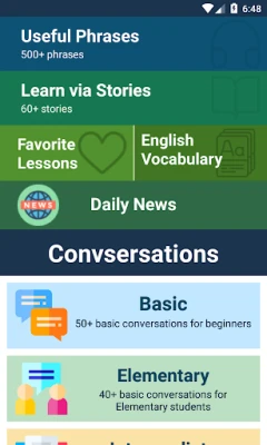 With this app, you can learn English via Listening, read daily news and learn vocabulary.