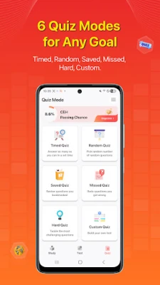 • Quick Study Modes: Train with random, timed, missed, saved, and hard quizzes — ideal for short study sessions.