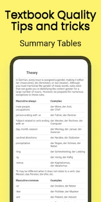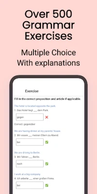 For beginners and advanced German learners. Learn vocabulary through Anki flashcards featuring over 15000 words, including A1, A2, and B1 Goethe word lists. Learn A1, A2, B1, B2, C1, C2 German words. Practice der, die, das with hints. Engage in various advanced grammar exercises covering cases, verb conjugations, prepositions, and more. Review German grammar through summary tables.