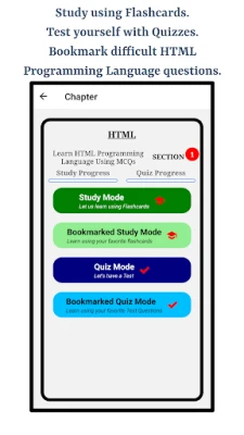 This app is a great resource to learn about HTML Programming Language. The app is engineered to make users perfect understanding common HTML Programming Language questions by studying for a very short amount of time. Audio functionality and bookmarking is available throughout the app on chapter, section, study mode and quiz modes.