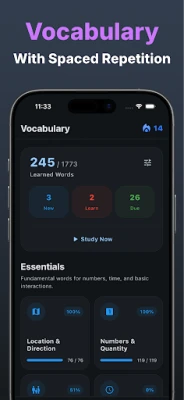 4. Spaced Repetition System (SRS): Master vocabulary efficiently with our smart SRS algorithm. It automatically schedules reviews for words at optimal intervals, ensuring you remember them long-term without the hassle of planning your own study schedule.