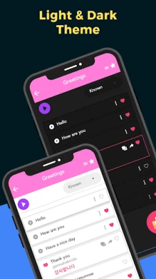 - Dark theme option while learning Korean language.