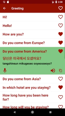 This is a pocket communication dictionary, used in offices, schools, amusement parks, shopping centers, airports, bus stations, train stations, tourist attractions. .. Learning Korean without internet connection. Features: 1. Sort threads by topic for use in many situations 2. Suggest common and common terms of communication 3. Standard pronunciation guide in Korean 4. Record your voice 5. Create your favorite word list
