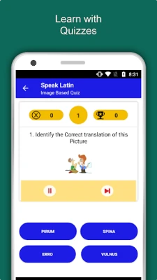 The offline Latin learning app has 2,135 words with 55 categories. It contains pronunciation, images and phonetics of words for easy learning. Switch base language, Save learnings in EduBank℠, audio play, Potpourri and retention games are the main features of Speak Latin app.