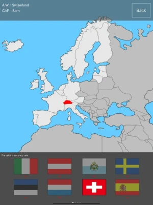 You can study national flag with location and capital.Since also saved accuracy rate of each country, while they check the weak parts,You can learn efficiently.