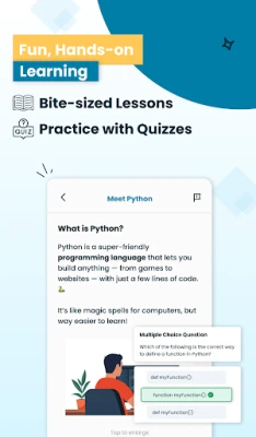 🧠 Bite-Sized Lessons: Learn Python in short, simple lessons designed for easy learning and fast recall.