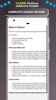 Learn Python Course Offline step by step from Beginner to Expert.if you want to build your carrer as a Python developer learn step by step complete course