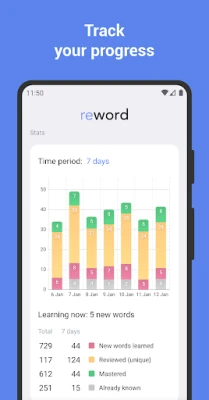 • Learning stats: Track your word memory over the past week, month, three months, and year.