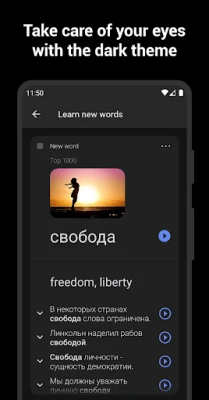 • To learn Russian words, all you need to do is swipe handy flashcards with pictures and example sentences - helpful mental shortcuts to build your vocabulary and understand the nuances of word meaning and how these words are used in real practice.