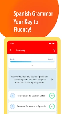 Unlock the path to Spanish fluency with 70+ grammar lessons, 15,000+ verb conjugations, and smart interactive exercises. Whether you're just starting out or brushing up your skills, this app is your complete guide to mastering Spanish grammar and verb usage.