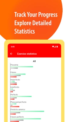 - Performance Insights: Track your progress with stats that break down your strengths and highlight areas for improvement across tenses and moods.